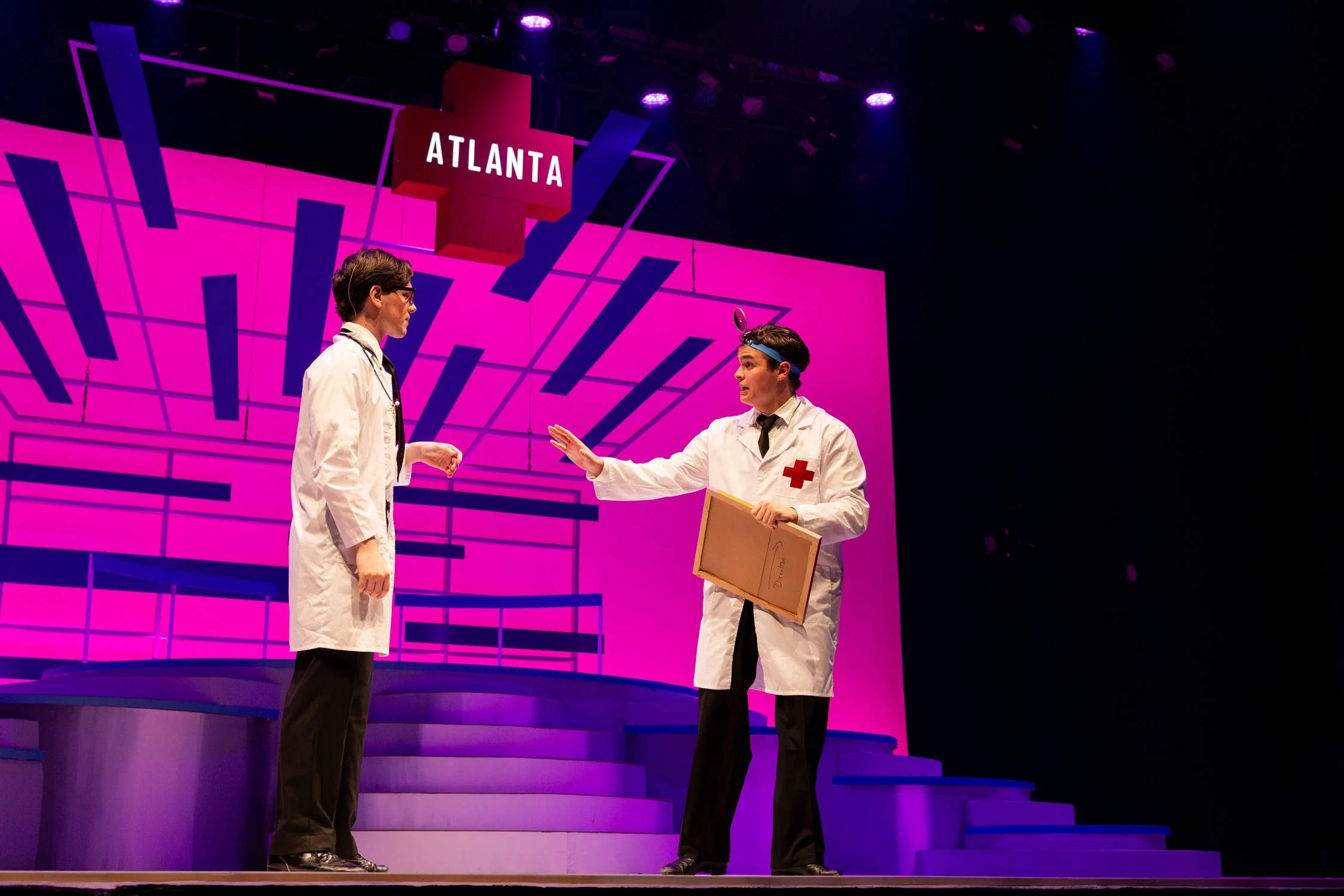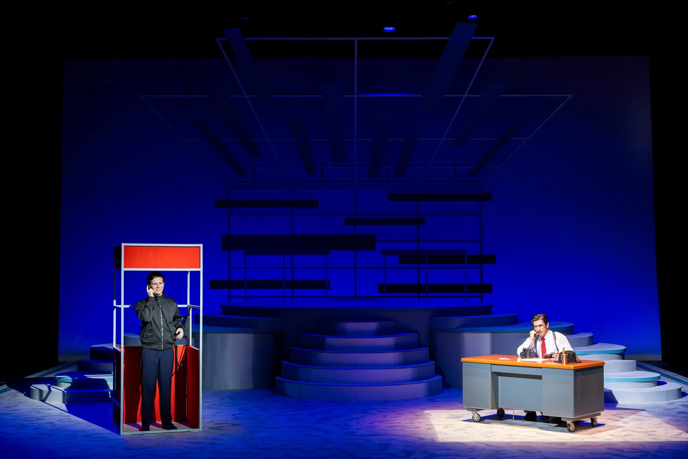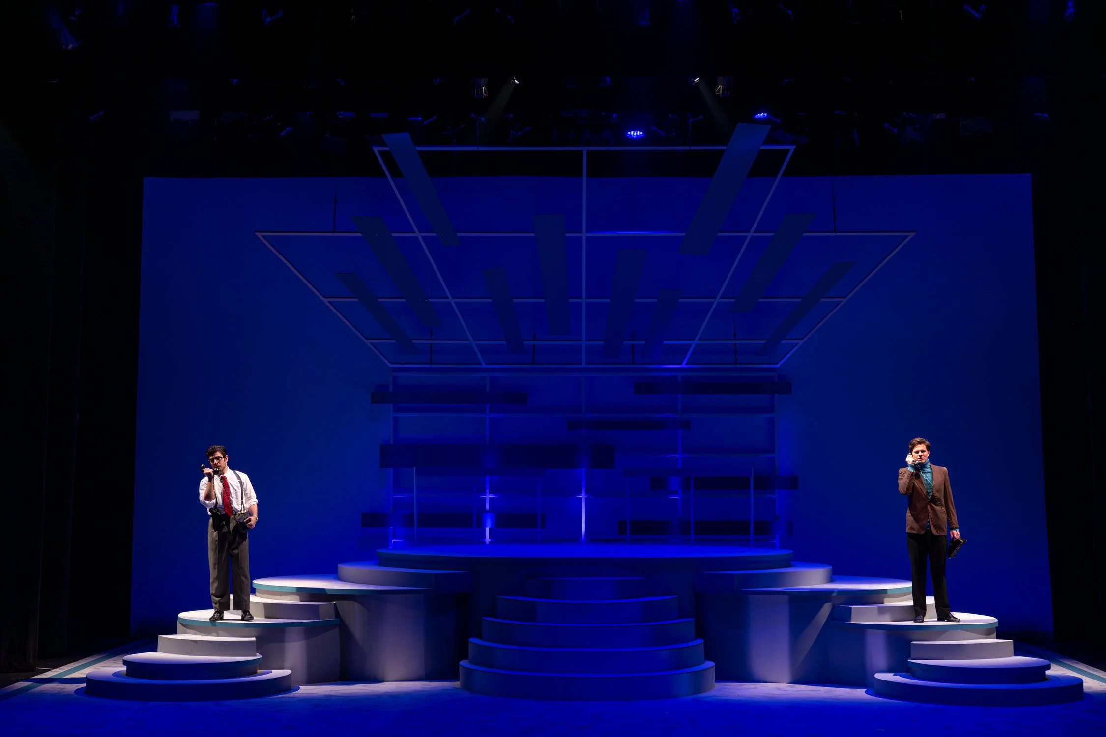 From the start, Gavin came in with a strong concept: we were to tell Frank’s story as if it were a 60s sitcom show. Cady Loeb, the set designer, curated a set of platforms reminiscent of a sound stage from the sitcoms of the time. After hours upon hours of watching 60s sitcoms for research, our creative team was able to pull together a colorful pallet of 60s inspired designs and concepts which came together on the stage to create a cohesive cinematic world.